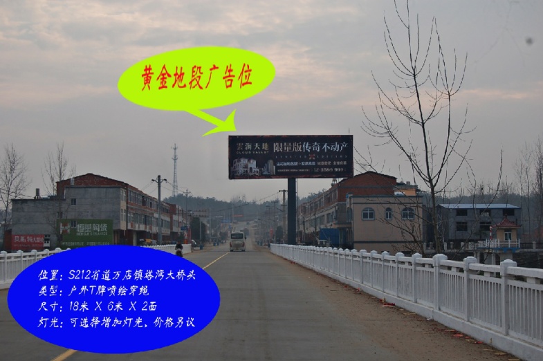 | 所在地区 | 湖北省>随州市>曾都区 | 媒体地址 | XZ007T S212万店塔儿湾大桥头 | |||